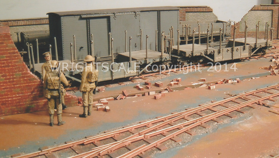 Further, if you have been following our blog, you will also notice that the buffer beams are not the right colour. The locomotives actually sported a glowing red, presumably for safety reasons. The enemy couldn't see down to the level of the buffer beams, but their own people could. But, the observer would argue, there could be an explanation for the buffer beams. Pont du Lyn is supposed to be on the Allied side of the Front and because both sides used the same gauge, it was quite common, as war ebbed and flowed, to have stock from both sides on one railway. The Allies may have acquired this locomotive during an advance and put it to work. They would have thought the red a trifle too bright and slapped a coat of British Standard Grey over it. There we are; we are so delighted with the presentation, that we find excuses and reasons for the little weaknesses. The mark of good art is a willing suspension of disbelief.